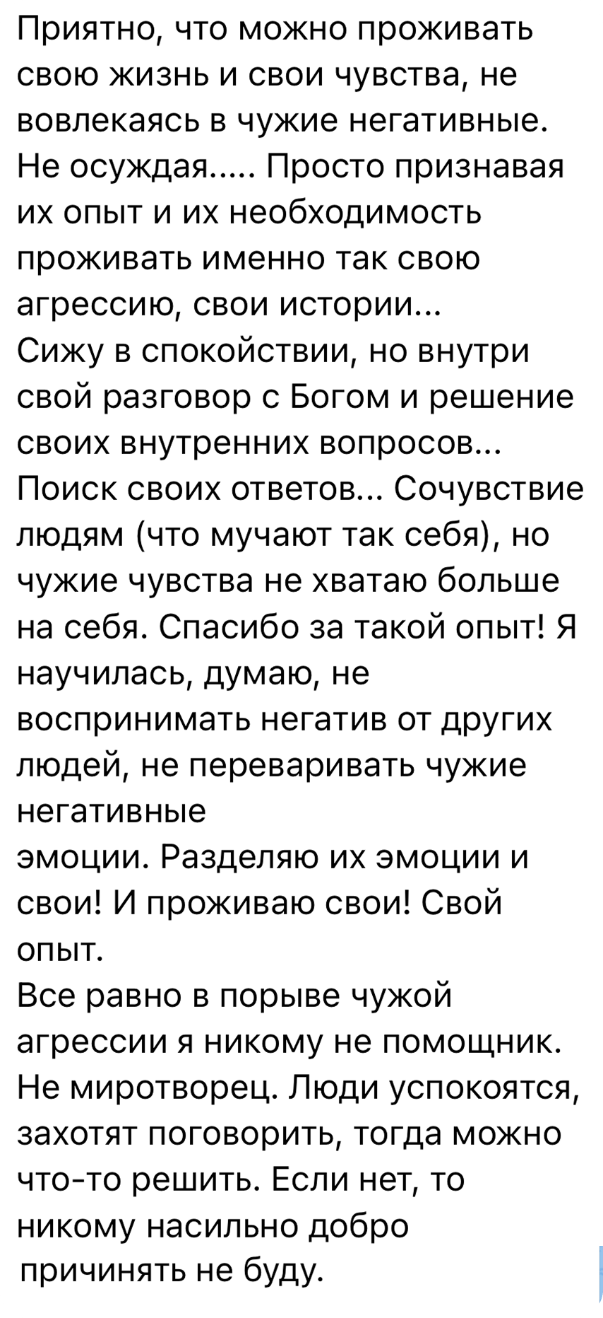 Я ежедневно читаю отчёты участников о выполненных заданиях, и они меня очень вдохновляют, вызывают радость и восхищение. Такие же эмоции рождаются и у кураторов. Если вы разбираетесь в тонкостях какого-то искусства, то и произведение оцените по достоинству, понимая, какой труд лежит в его основе. Многие ответы опытных участников достойны называться «произведениями», «высшим пилотажем». И очень ценно, когда кто-то понимает, чего тебе стоили изменения в душе.