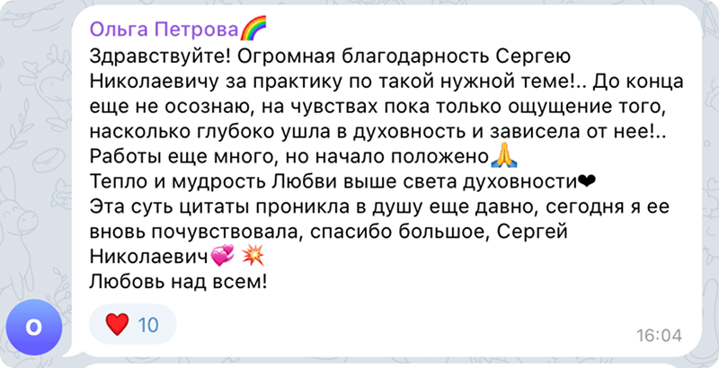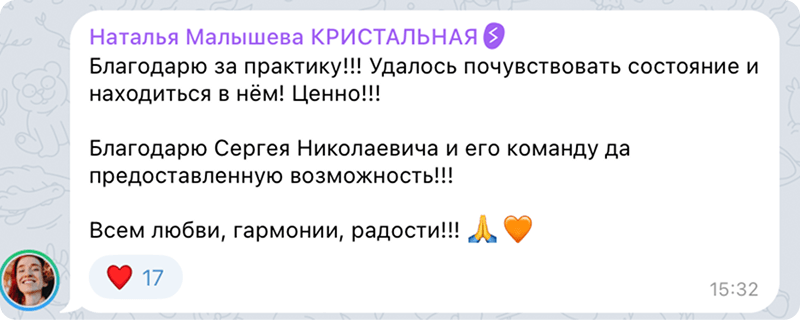 Вы услышите вступительное слово, где Сергей Николаевич объяснит детали практики и задаст настрой для внутренней работы.